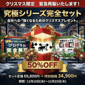 ① ブラックフライデーセール ② 12/14 セミナー参加者特典 【どちらが最適?】「究極のビッグ3」&「究極のプログラム」 目的別・賢いご購入ガイド 現在、「究極のビッグ3完全解説」「究極のトレーニングプログラム完全解 […]