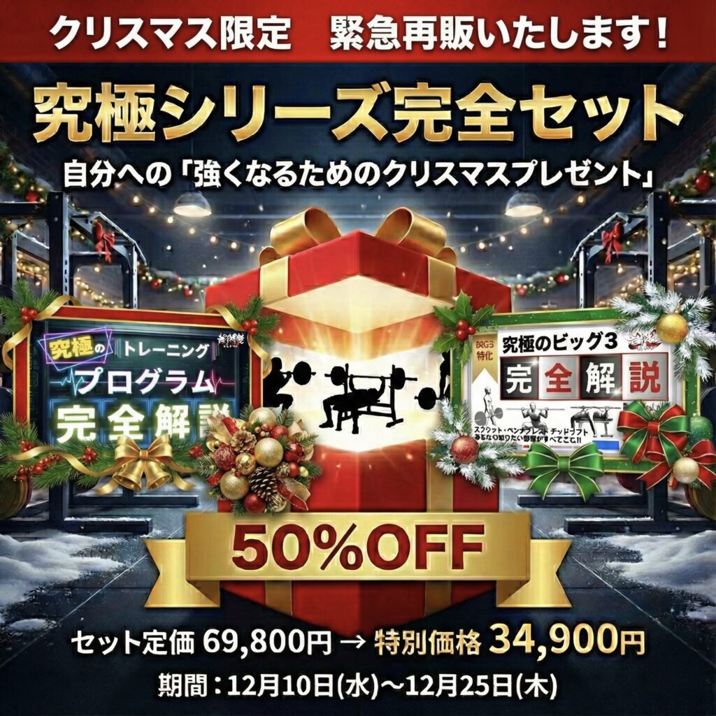だからこそ、この2つを網羅した「究極のビッグ3完全解説」と「究極のトレーニングプログラム完全解説」は、セットで学んでいただくのがベストなのです。